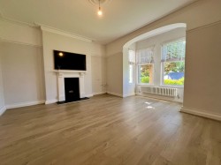 Part glazed door to hall. Wood effect flooring. Bay window to fore with uPVC sash windows. Traditional cast iron style radiator. Cast iron fire place with surround and hearth. (blocked off). Alcoves. Picture rail.